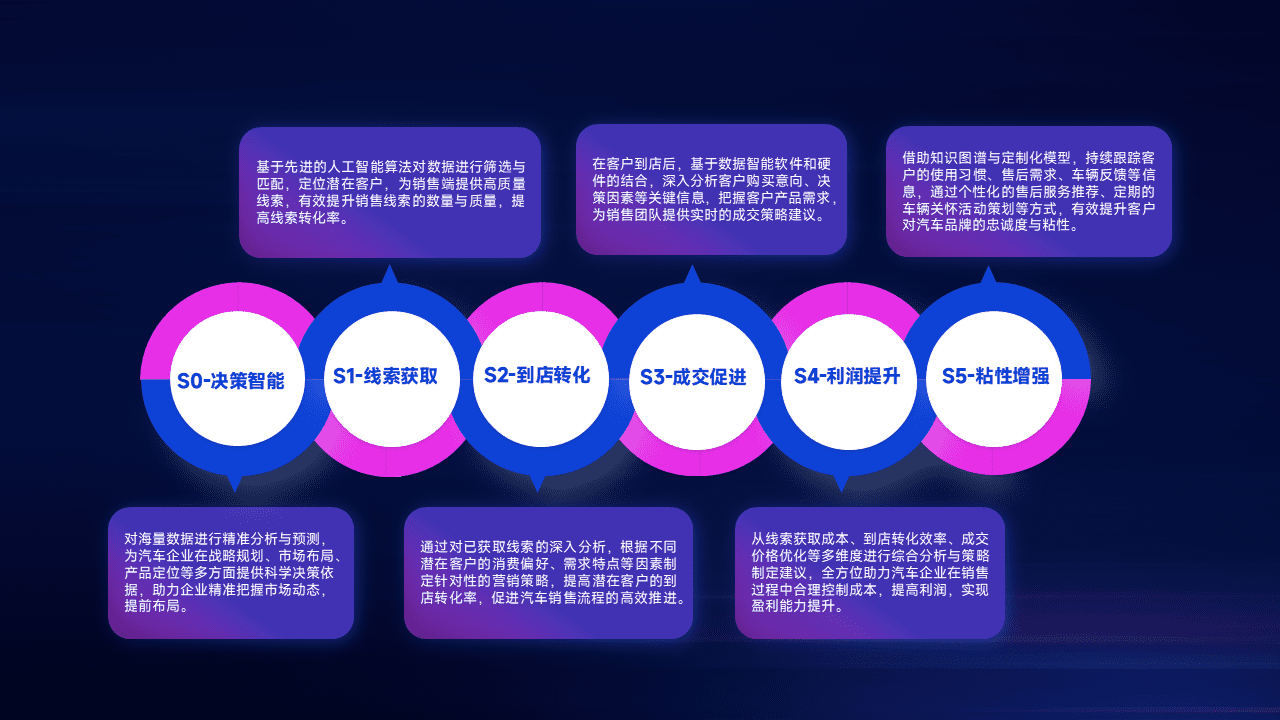 通过拓宽潜在客户来源、、优化线索分配并提高到店转化率,,以增强销售效率。。同时,,,利用线索数据不断优化分析模型,,,,有效提升转化率,,,扩大营销影响力。。。。